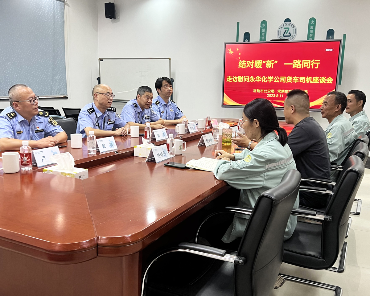8月11日下午,常熟市公安局交警大隊教導(dǎo)員戴儉、市公安局車管所指導(dǎo)員鄧惠宏、市交通運輸局執(zhí)法大隊副大隊長于斌及執(zhí)法大隊黨委副書記戴敏蒞臨我司慰問貨車司機。我司支部書記、總經(jīng)理顧學(xué)峰親自接待。