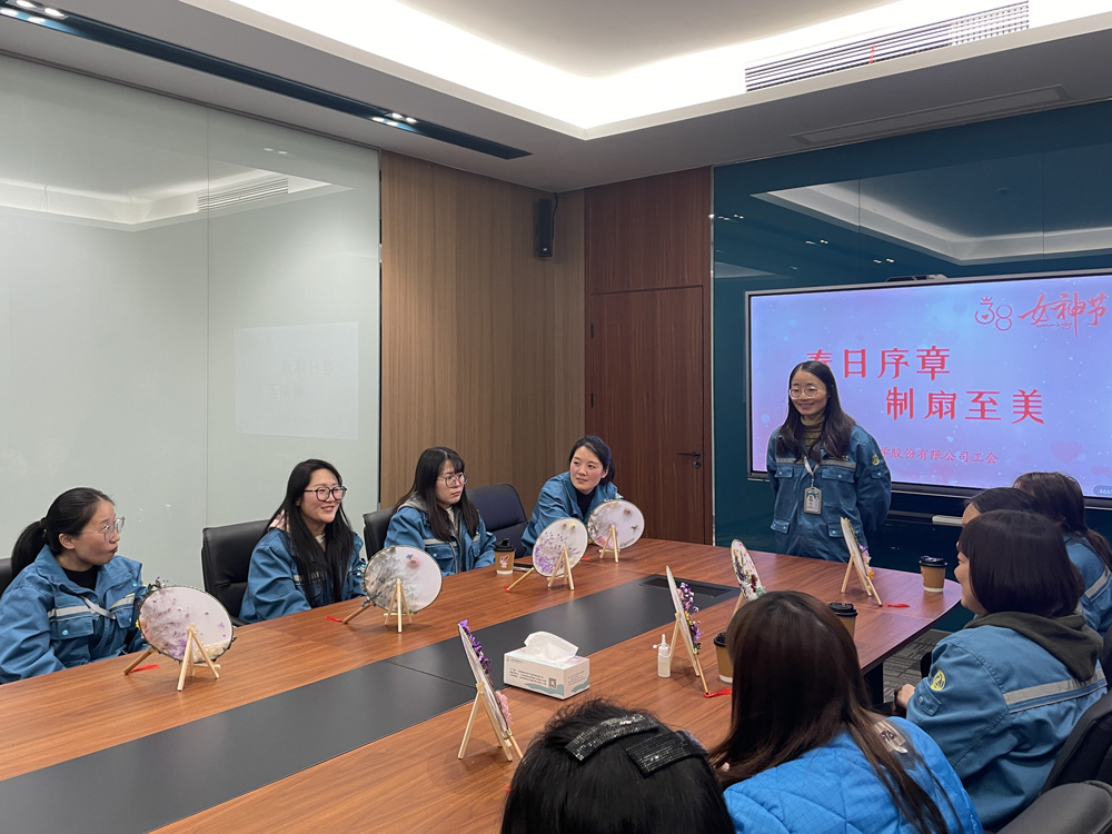 活動(dòng)現(xiàn)場(chǎng),女員工代表們齊聚一堂,親手制作專屬團(tuán)扇。大家充分發(fā)揮創(chuàng)意和想象力,將春日的美好祝愿融入扇面,一幅幅精美的團(tuán)扇作品在指尖綻放。
